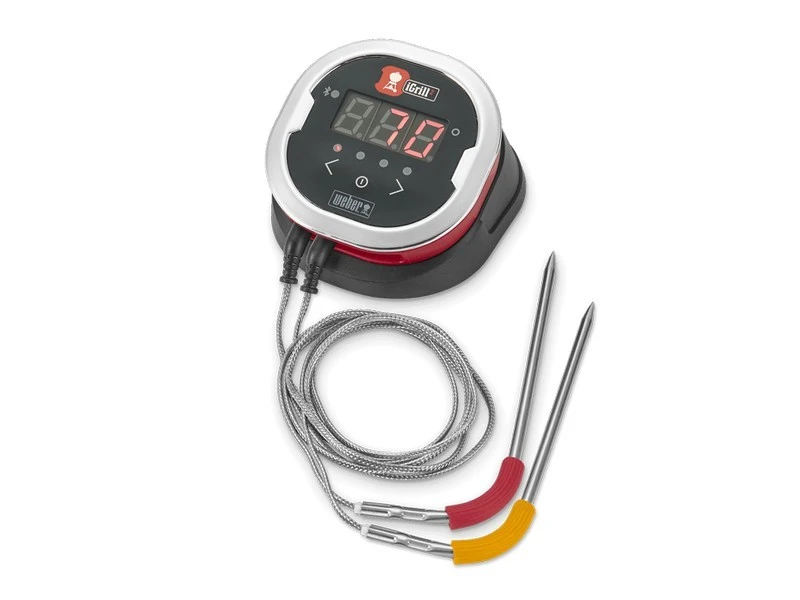 Vanaf nu is grillen geen kwestie meer van gokken: kook uw vlees precies zo gaar als u wilt, zonder om de haverklap te hoeven controleren. Gebruik de iGrill 2 digitale thermometer om maximaal vier stukken vlees tegelijk in het oog te houden en precies het gewenste gaarheidsniveau te halen. Met 200 uur batterijduur en 45 meter draadloze verbinding zonder obstakels wordt deze magnetische, aan uw barbecue bevestigbare thermometer twee kleurgecodeerde vleessondes van professionele kwaliteit, en kan maximaal vier sondes tegelijk aan. Via de Weber iGrill app maakt de thermometer verbinding met uw mobiele apparaat om u direct te laten weten wanneer uw voedsel de gewenste gaarheid heeft bereikt. De iGrill 2 beschikt ook over een verlicht display met led-temperatuurweergave, zodat u nooit de deksel van uw barbecue of rookoven hoeft op te tillen en daarmee het kookproces onderbreekt.